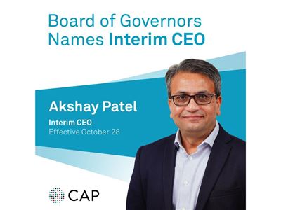 “The CAP Officers and Board of Governors have full confidence in Akshay’s leadership and his ability to advance our mission,” Dr. Zhai said. “The Board also wishes to express the same confidence and trust in our current executive operations team who together will assist in this transition process. Under Akshay's guidance, the CAP will continue serving patients, pathologists, and laboratories through our programs and services that advance excellence in pathology and laboratory medicine worldwide.”